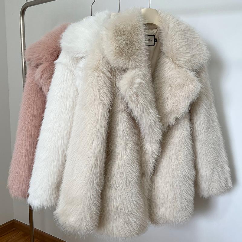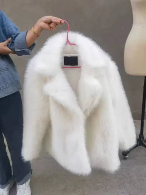 Manteau court en fausse fourrure femme, col châle oversize, veste peluche chaude hiver, coupe droite élégante