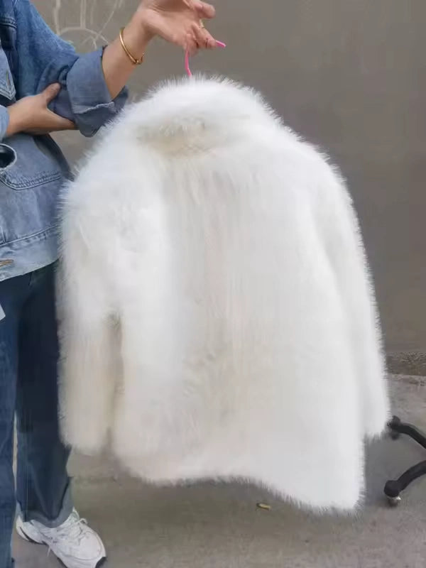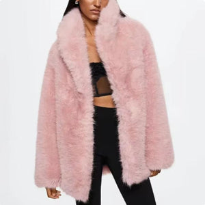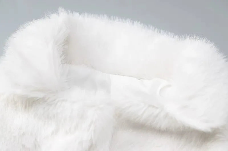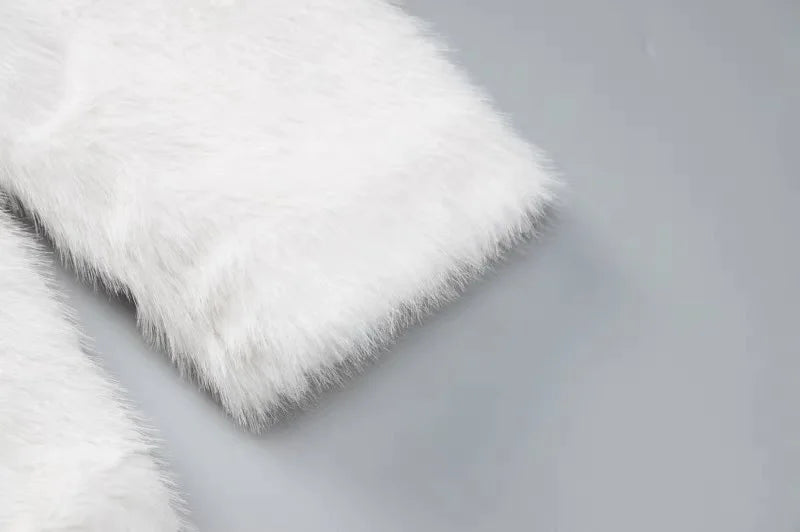 Ce manteau court en fausse fourrure enveloppe la silhouette d’une chaleur homogène tout en restant léger. La texture peluche dense isole bien du froid et garde le buste au chaud lors des journées d’hiver en ville ou en soirée.