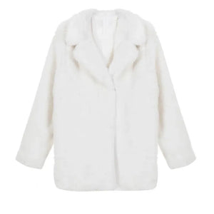 Manteau court en fausse fourrure ultra douce avec grand col châle, coupe droite chaude et élégante pour l’hiver. Disponible du S au 3XL, plusieurs couleurs tendance pour sublimer vos looks de jour comme de soirée.
