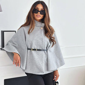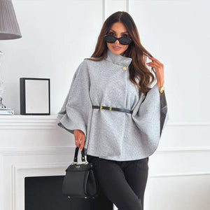 Cape poncho femme ceinturée col montant manches chauve-souris, manteau cape court élégant automne hiver, veste poncho unicolore chic pour bureau et sorties