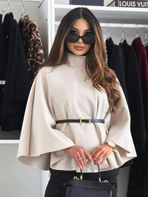 Cape poncho ceinturée col montant