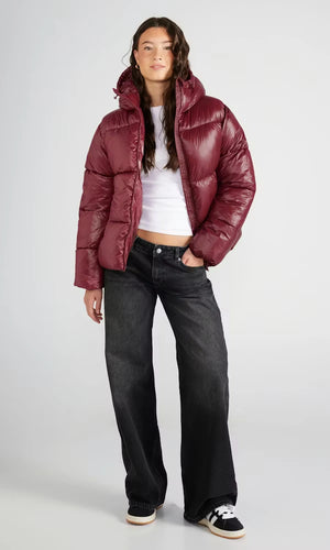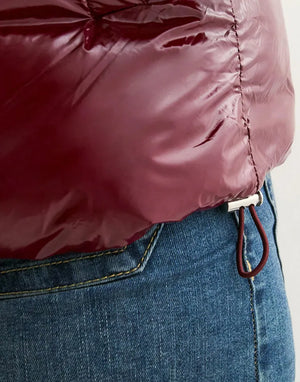 Sa finition brillante donne une allure moderne qui se porte aussi bien avec un jean et des baskets qu’avec un pantalon tailleur et des bottes. Disponible en noir profond et bordeaux, c’est la doudoune parfaite pour celles qui veulent une pièce courte, actuelle et vraiment chaude pour l’hiver.