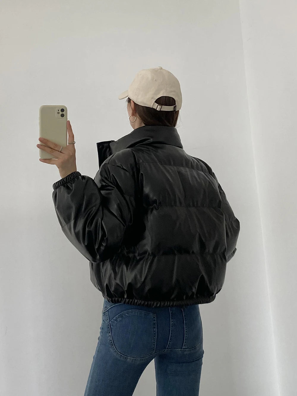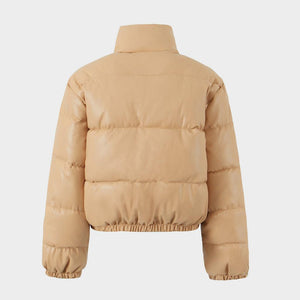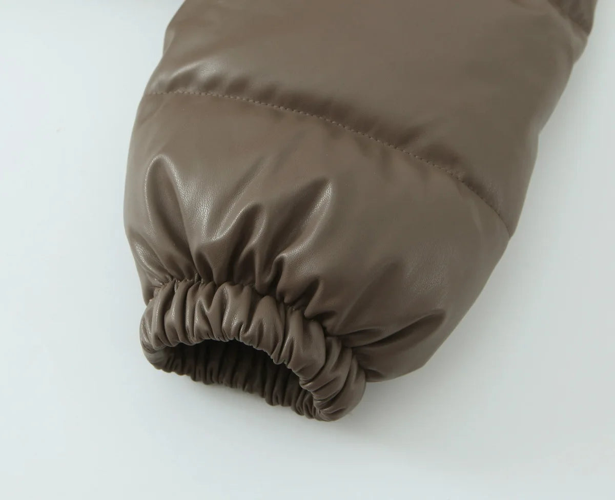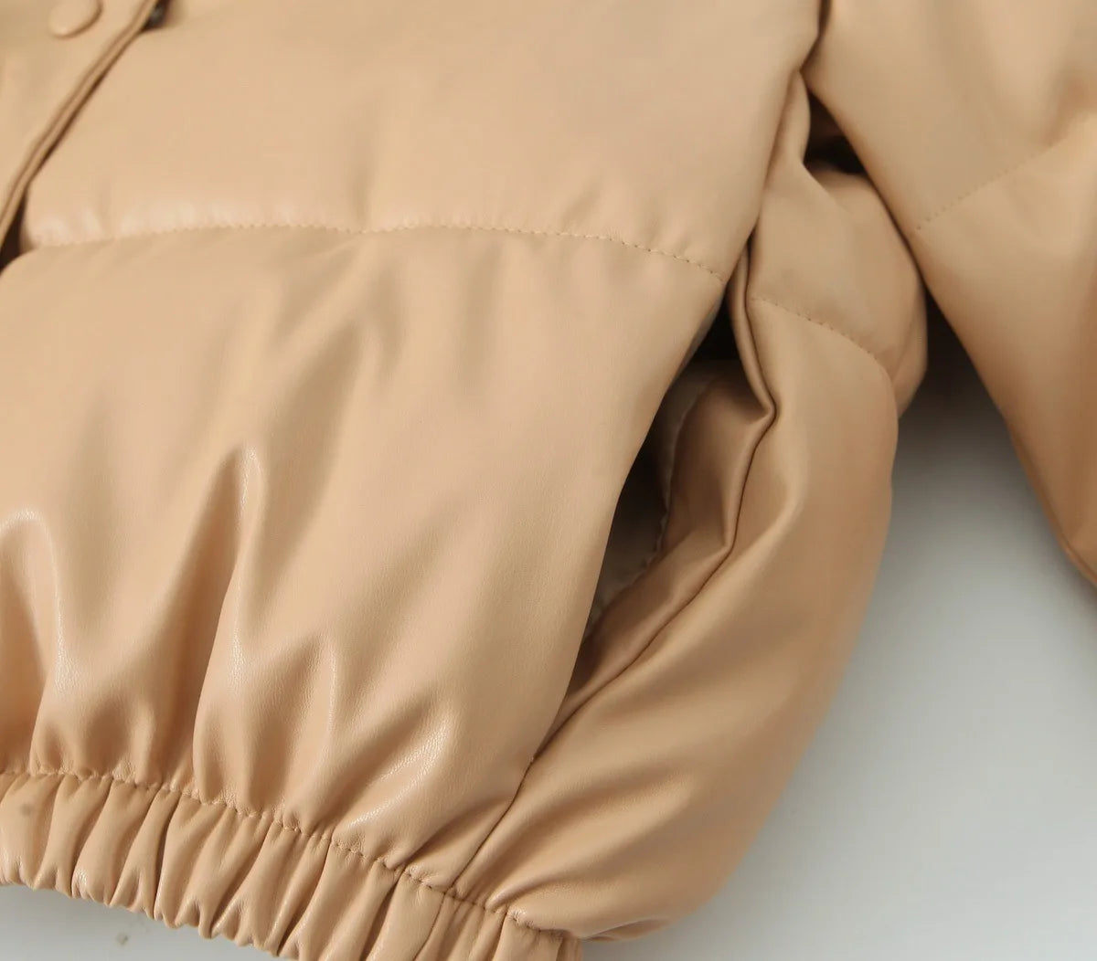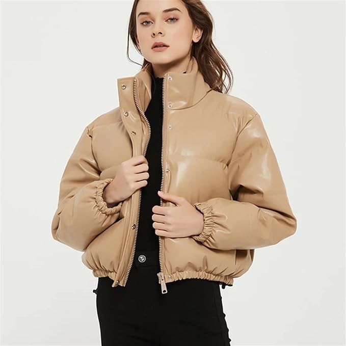 Doudoune courte femme en simili cuir noir ou beige, veste matelassée chaude et élégante