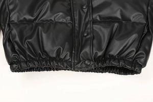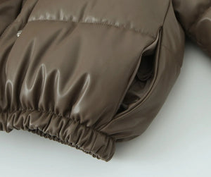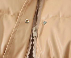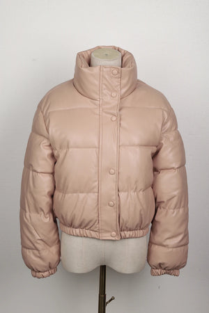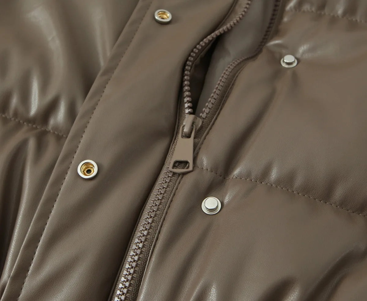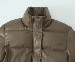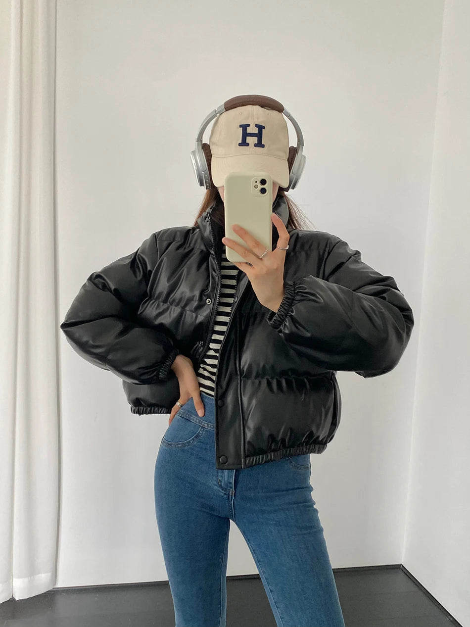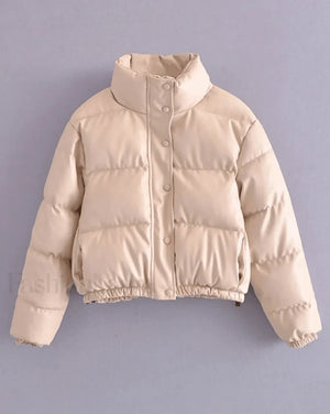Doudoune courte femme en simili cuir noir ou beige, veste matelassée chaude et élégante