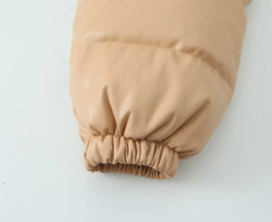 Le matelassage épais offre une vraie sensation de cocon sans alourdir la silhouette. Les manches longues à poignets élastiqués gardent la chaleur, tandis que la base resserrée souligne la taille sans serrer. La fermeture zippée sous patte à boutons pression protège efficacement du vent et finit le modèle avec une note soignée.