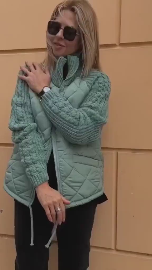 Veste Matelassée Col Montant Patchwork Tricot