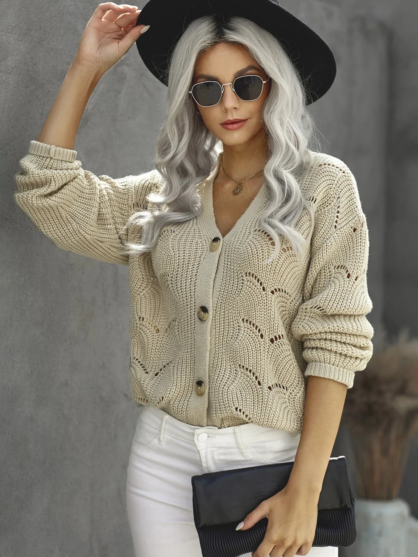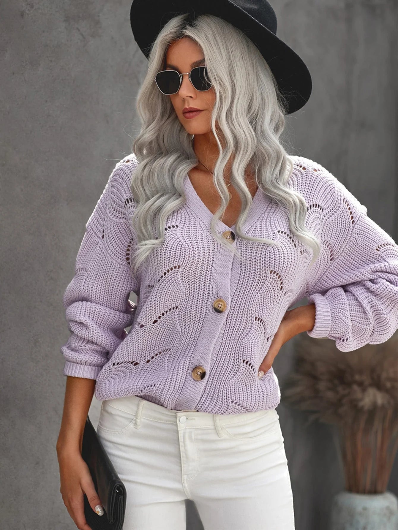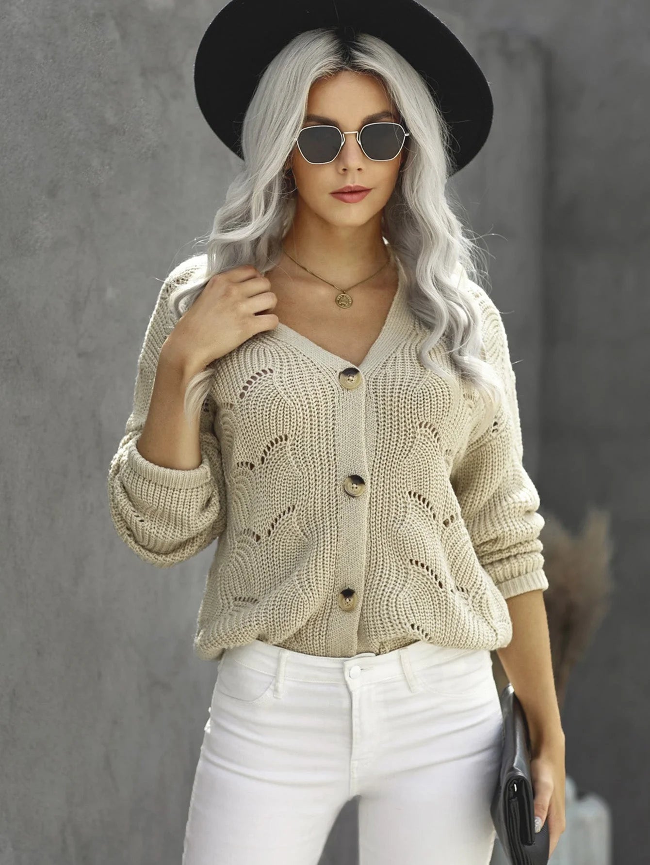 ardigan femme tricoté col V, manches longues, coupe régulière, maille douce anti-boulochage, style casual chic pour automne et hiver