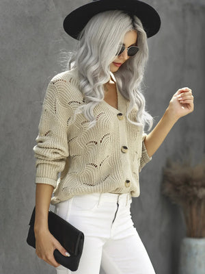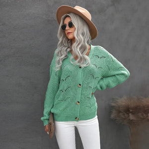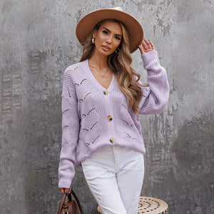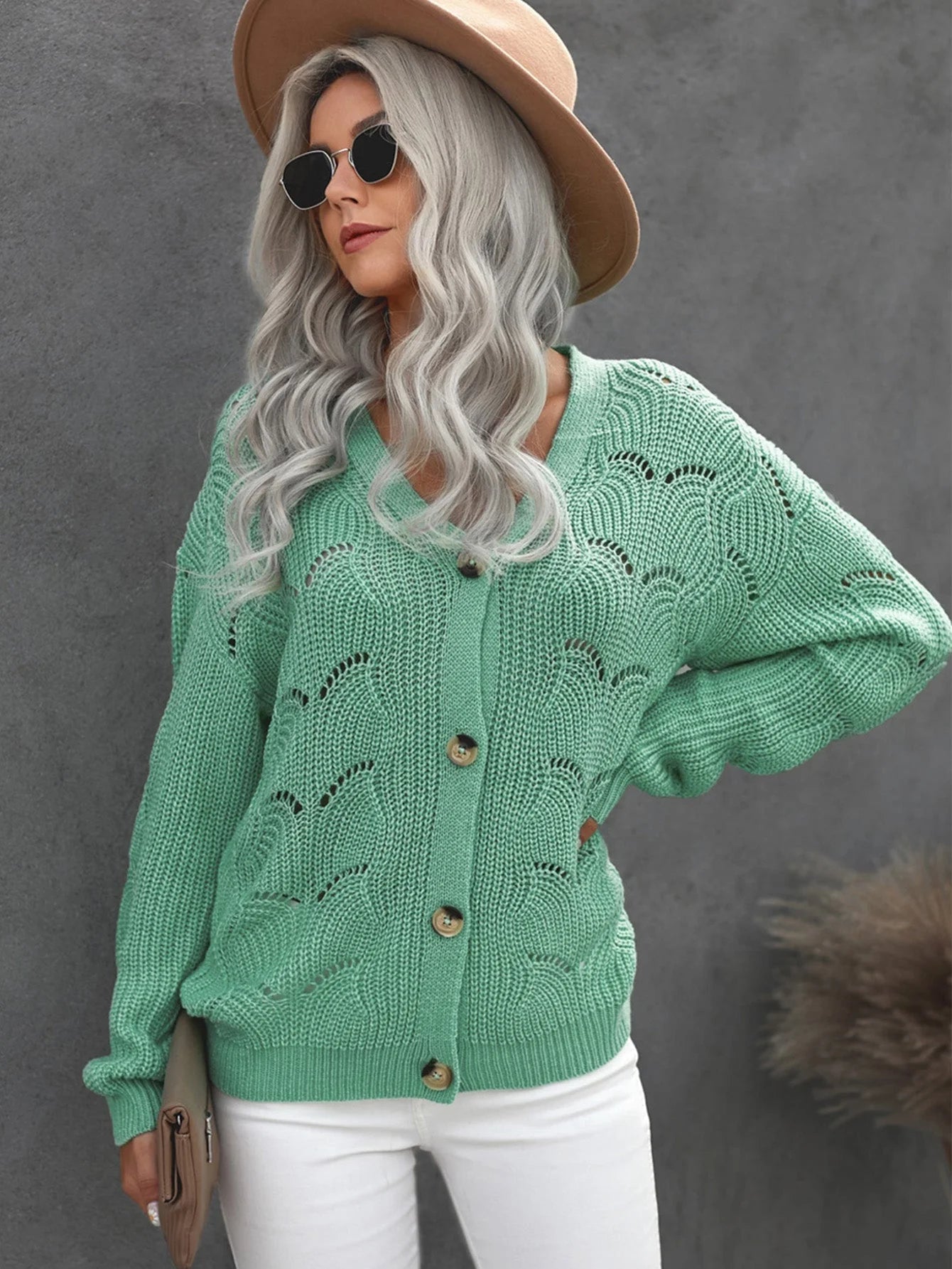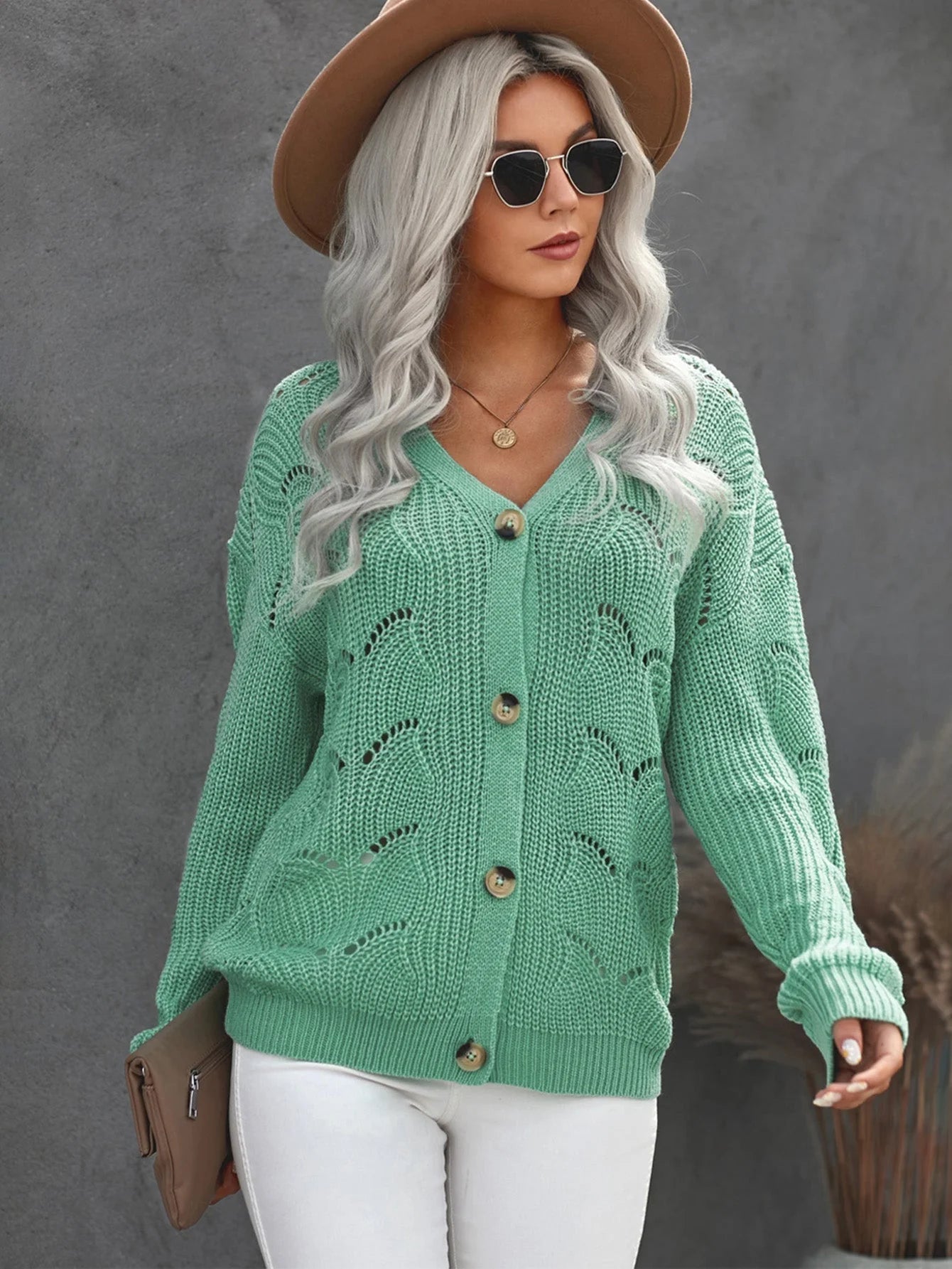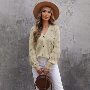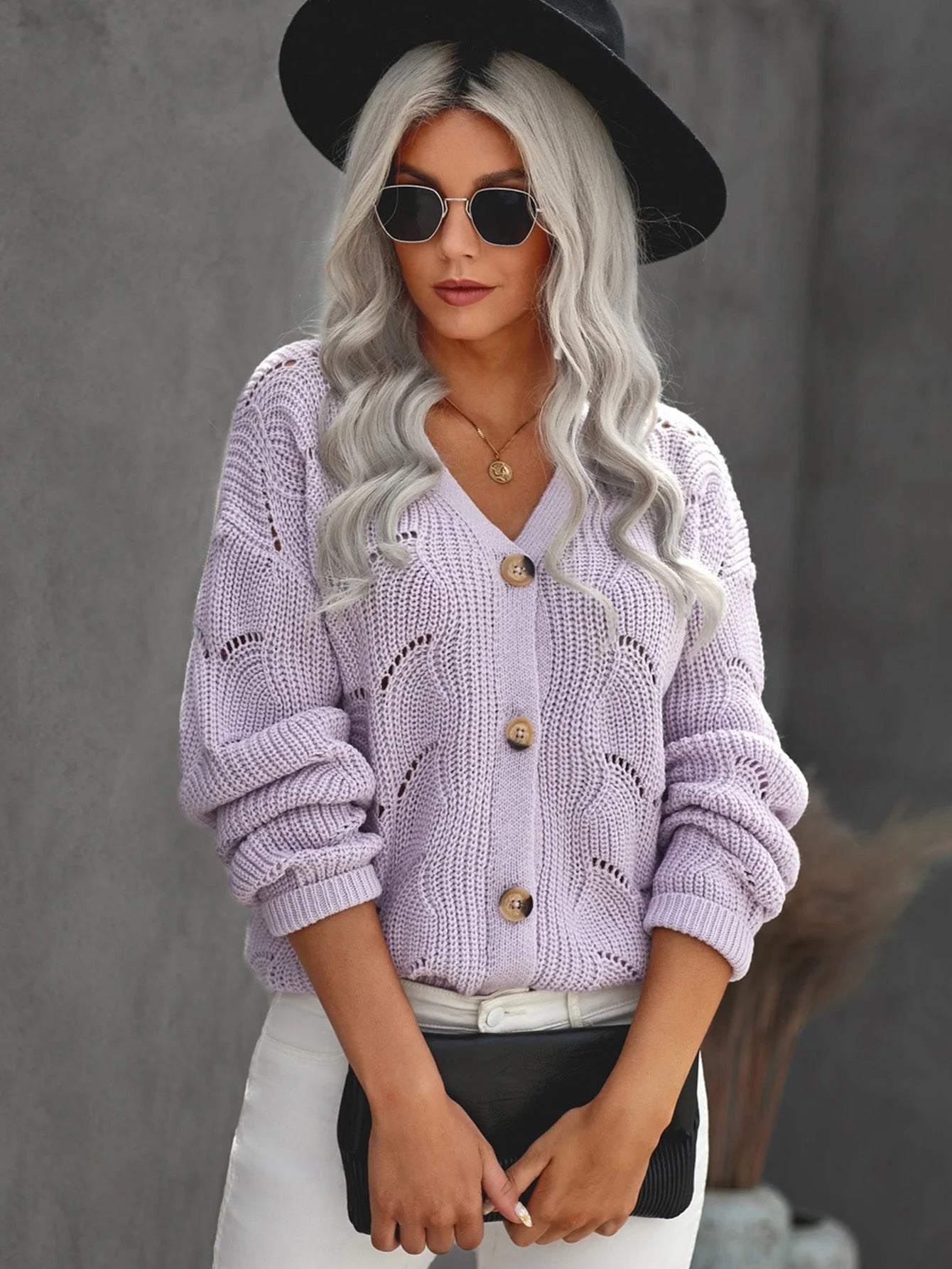 ardigan femme tricoté col V, manches longues, coupe régulière, maille douce anti-boulochage, style casual chic pour automne et hiver