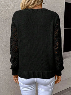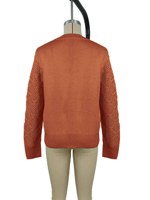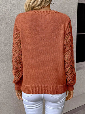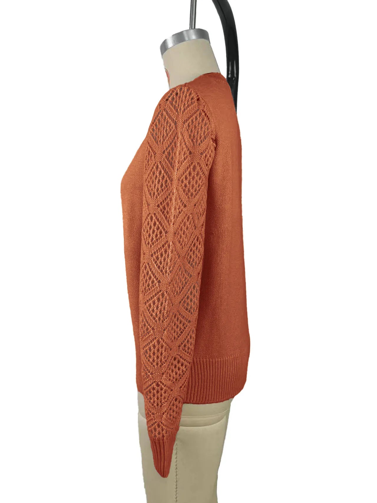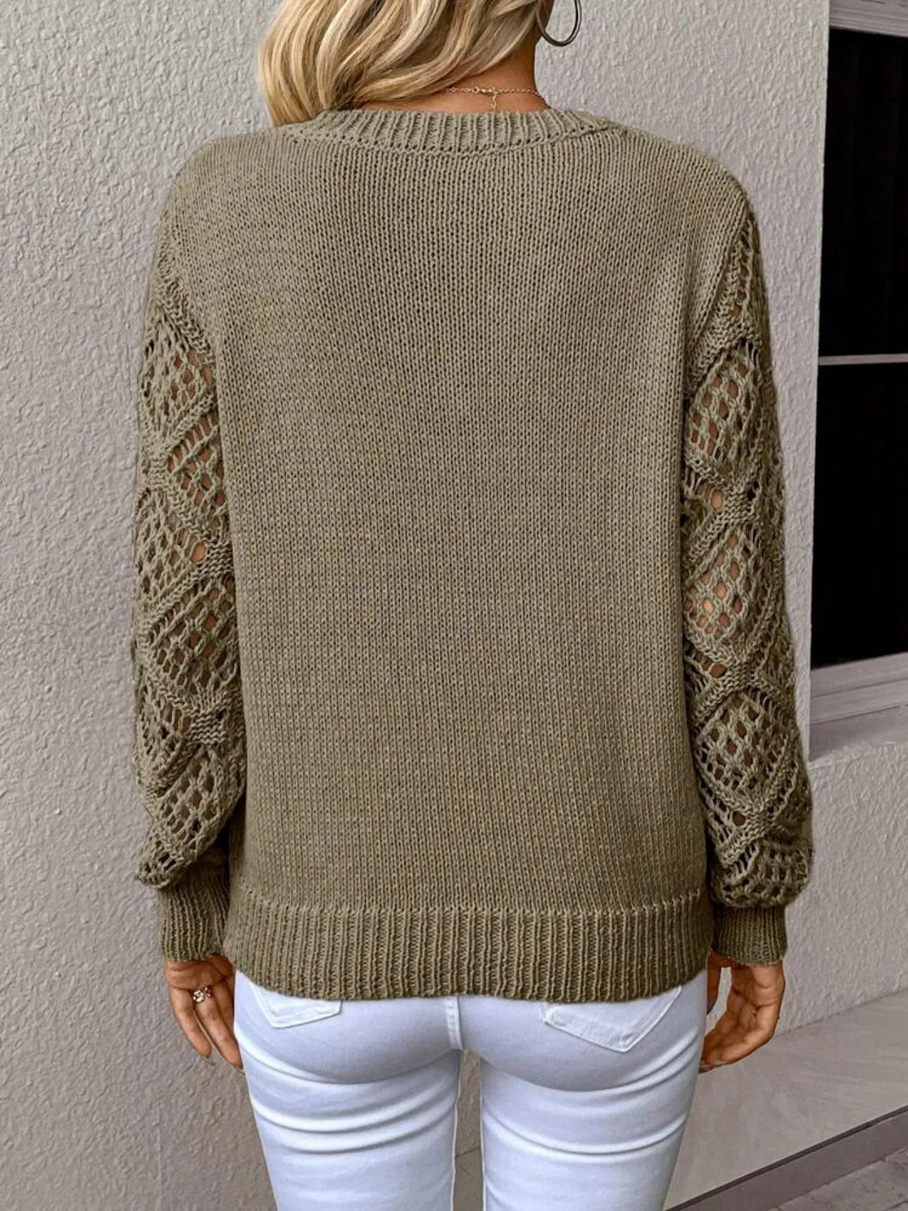 Pull ajouré en maille douce – col V féminin, manches longues, coupe ample et légère pour un style chic et décontracté