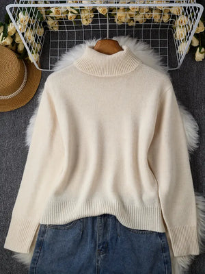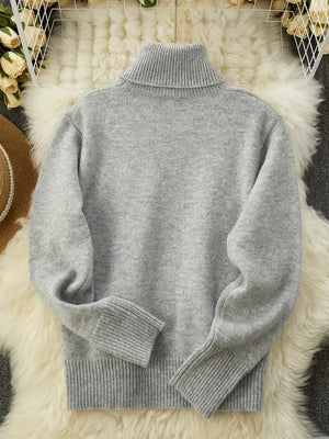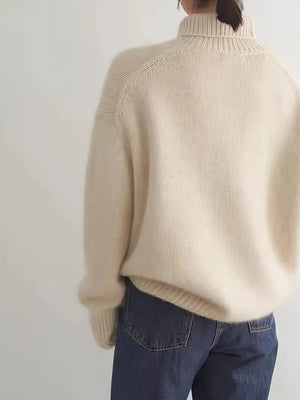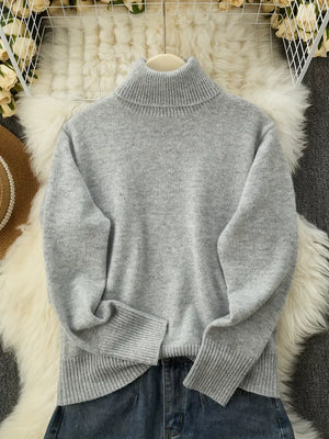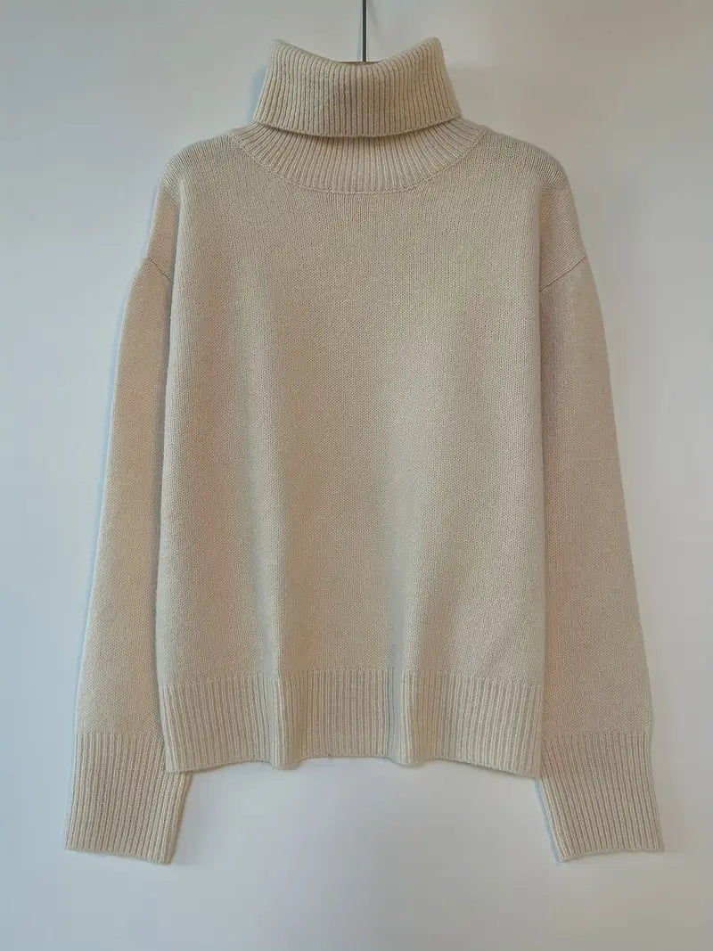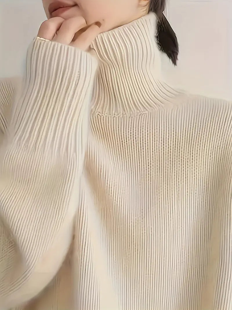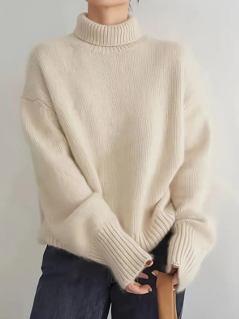 Pull oversize à col roulé pour femme, pull en maille chaude type laine, gros tricot ample automne hiver, pull cosy long manches longues, haut chaud casual chic.