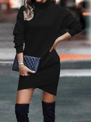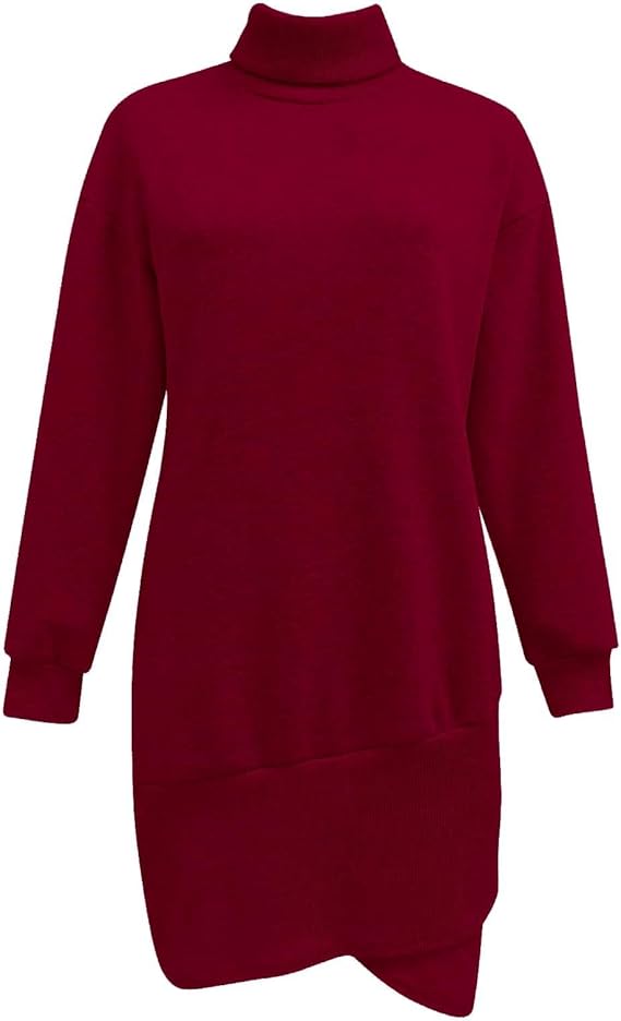 Robe pull femme col roulé manches longues, ourlet asymétrique croisé, robe sweat chaude automne hiver, coupe moulante bas, couleur unie S à 3XL