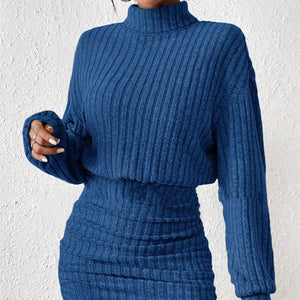 Robe Pull Tricotée à Col Haut
