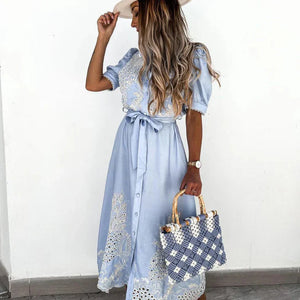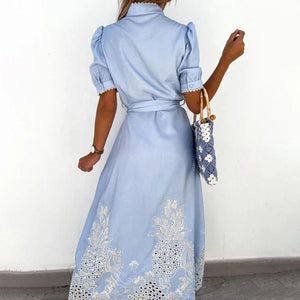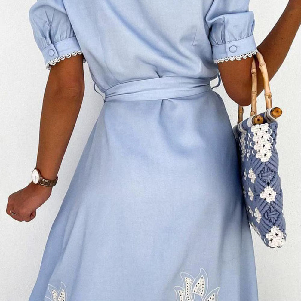 Céleste – Robe Midi Brodée Bleu Ciel pour l'Été