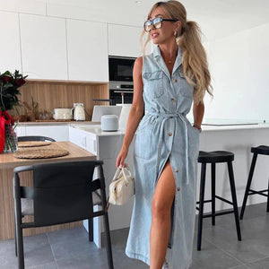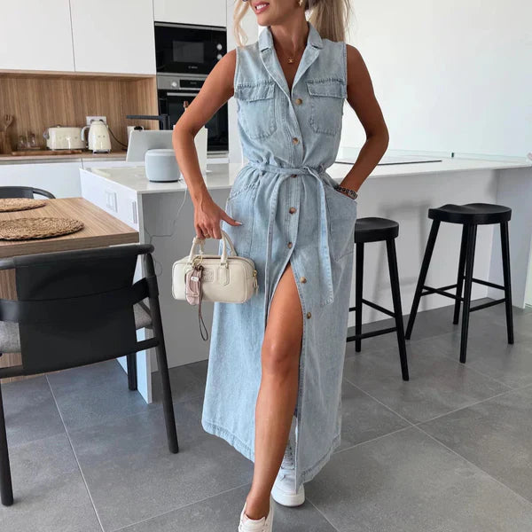 Lina – Robe en Denim Sculptée pour Élégance et Confort