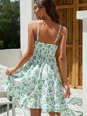 Élégance Naturelle : Robe Courte Fleurie Verte, Fraîcheur et Charme Estival