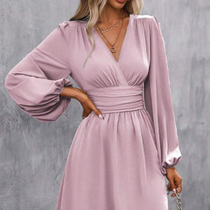 Robe Mi-Longue Évasée à Manches Lanternes