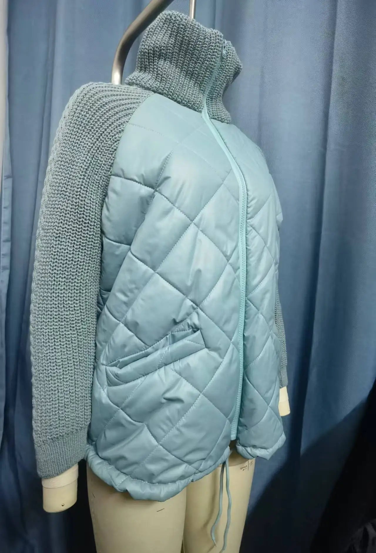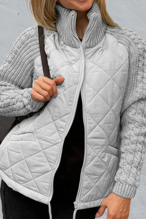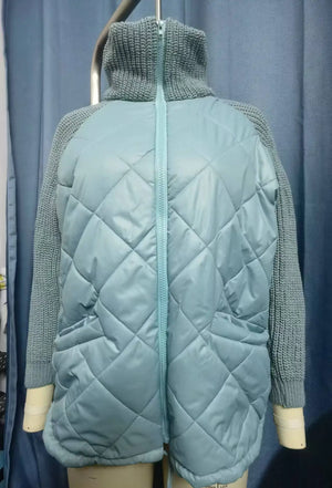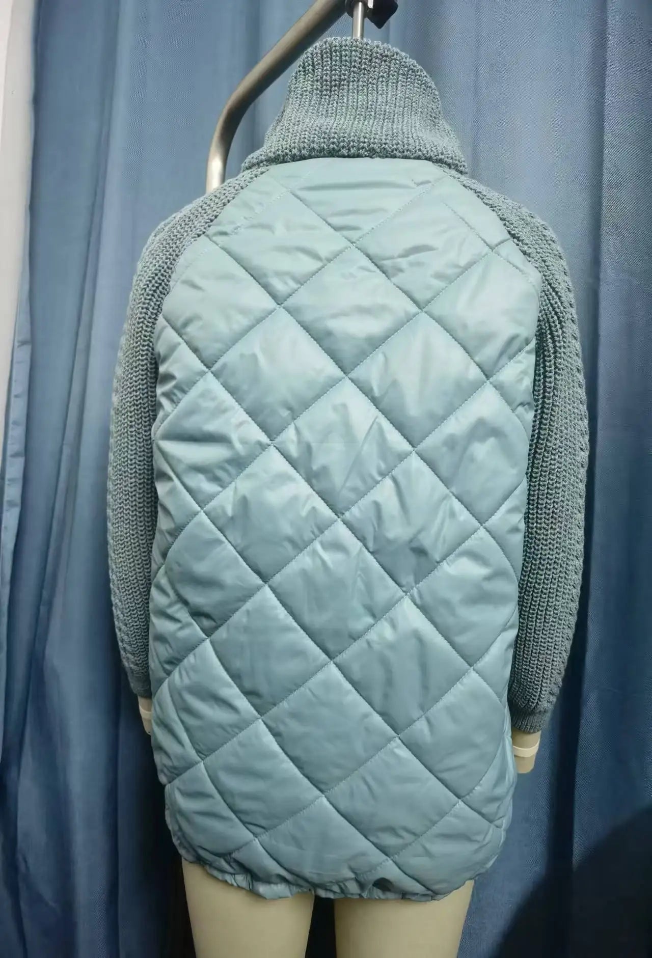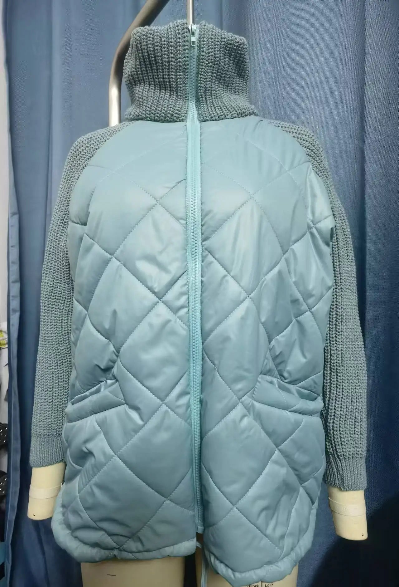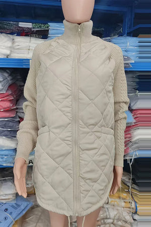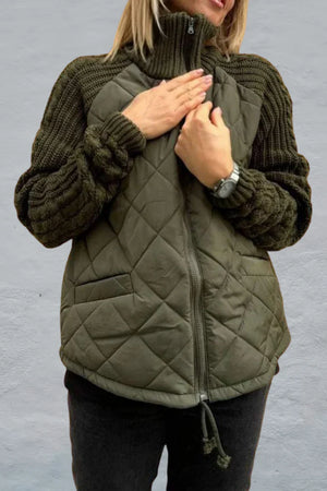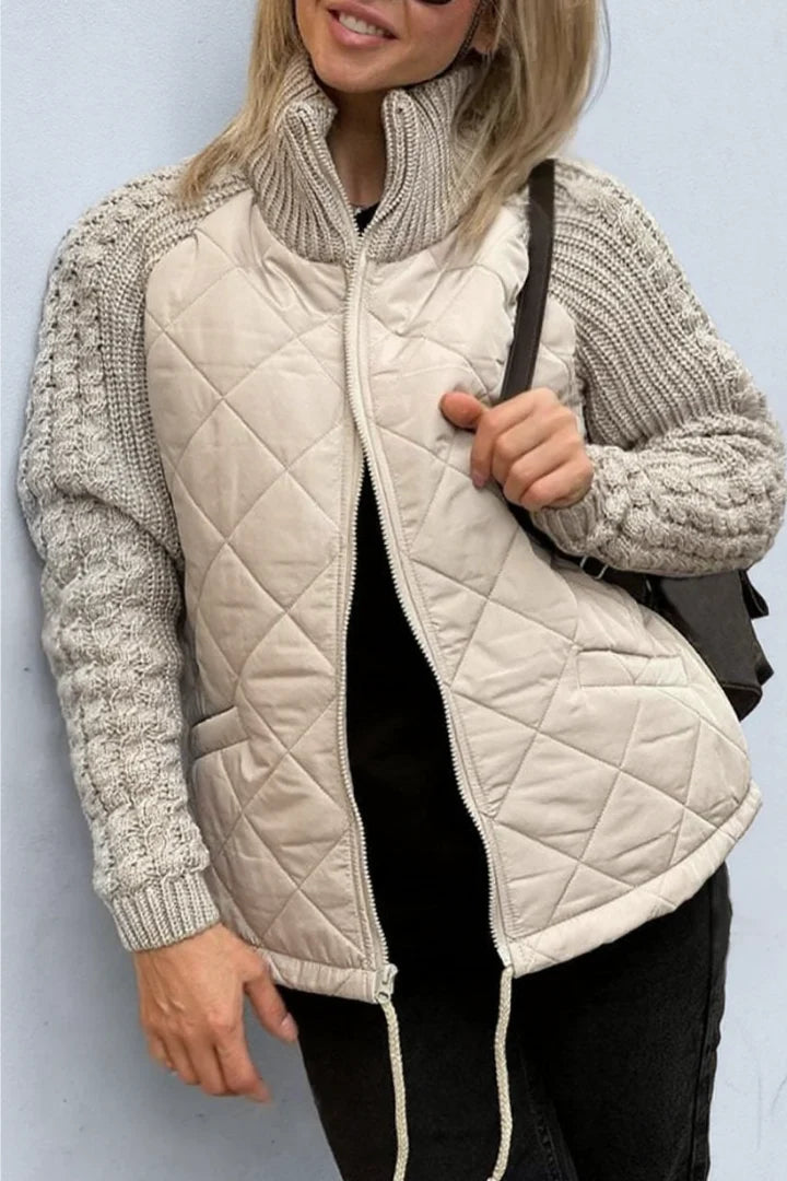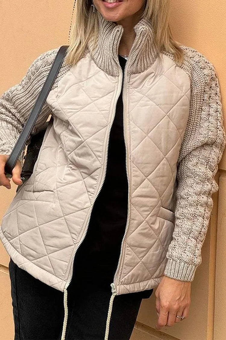 Veste matelassée femme col montant | Manches en maille torsadée | Manteau chaud automne hiver avec poches